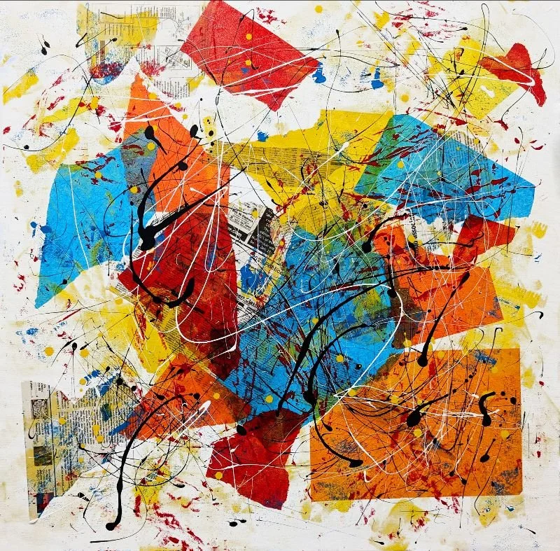 “Inner Conflicts,” 30 x 40 acrylic, paper on canvas.