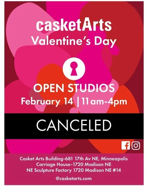 Due to continuing concerns regarding the safety of our artists and visitors, Casket Arts has reluctantly canceled the scheduled Open Studio Saturday celebrating Valentine's Day on February 14. Instead we plan to hold a "Come Together With Art" open studio on March 14, 11 am -4 pm. Stay tuned for details!