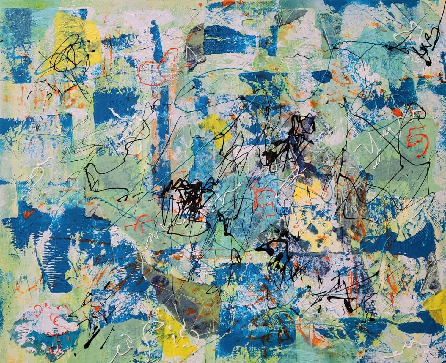 When I first returned to painting after 50 years, I only thought in traditional two dimensions. Yet within a few weeks I felt compelled to try different ways of applying paint that gave the works depth, that created layers and multiple avenues to interpretation. Inevitably I turned to "art papers" (commercial and home made), cardboard, bubble wrap, found materials, and a variety of acrylic mediums, exploring textures, light and color in combination with paint. I love playing with fluid paints that can be squirted, splashed or sprayed. They provide energy. I also experiment with a variety of pastes and gels that act as topographic maps, crevices, wrinkles, canyons, and use a variety of tools and objects to carve or emboss more texture and more layers. Many of my works are third or fourth generations—that last layer providing the rationale for the first. Although I might have a general direction in mind when I start, sooner or later the materials find their own path. And yes, sometimes just paint is enough; a few of my works are simply “acrylics on canvas” or several paints (acrylic, house paint, acrylic paint markers) without additional materials.